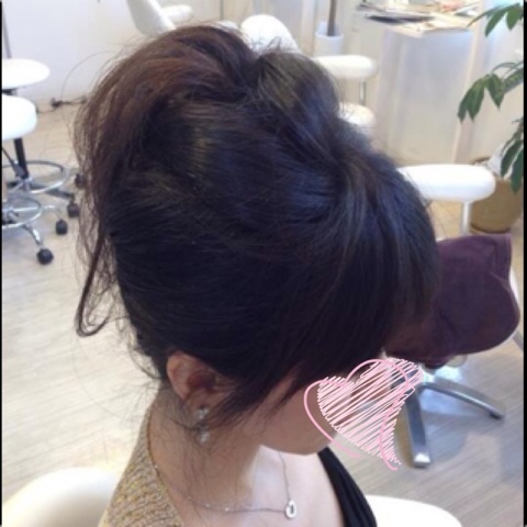 髪型は首筋の傷が見えないように、サイドアップで盛り盛りの髪に(笑)